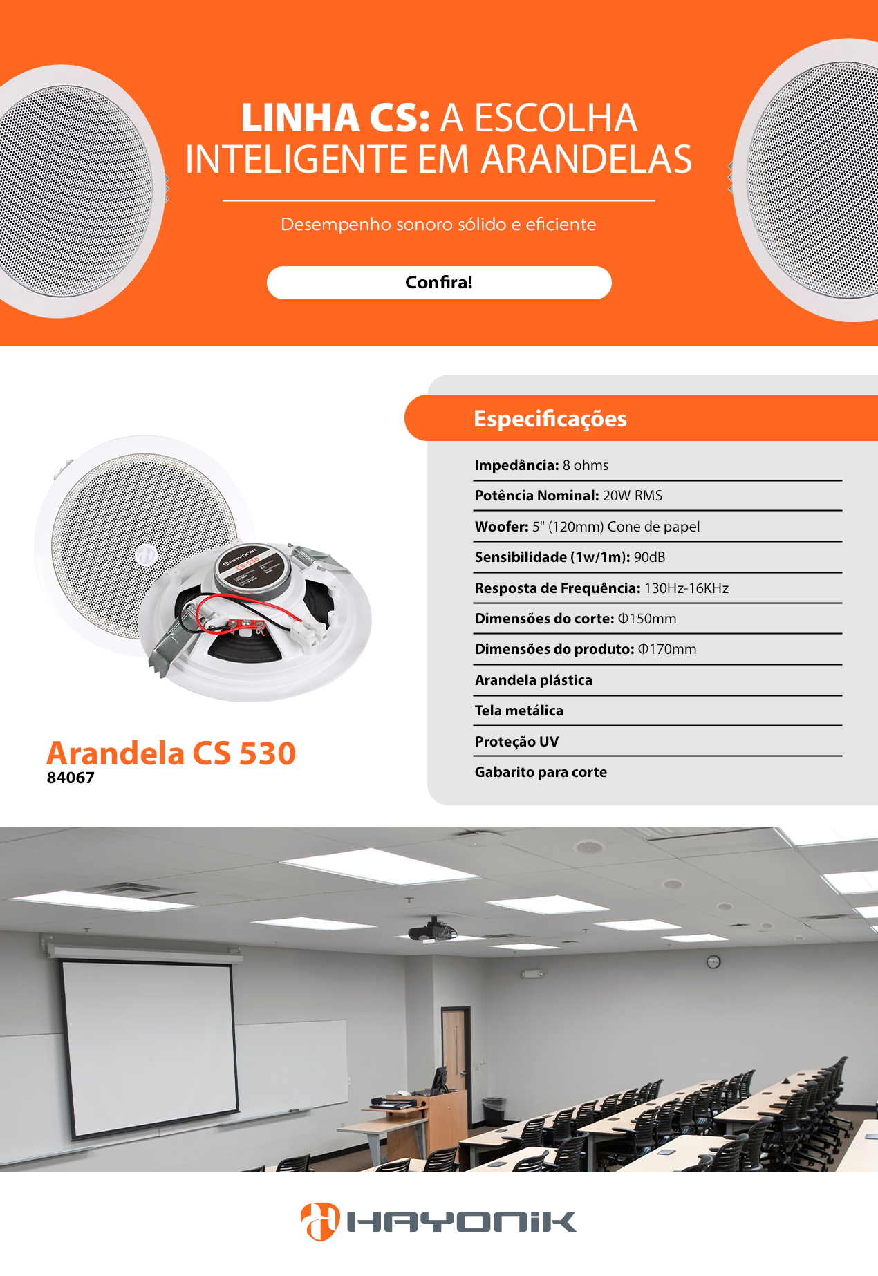 A Arandela Hayonik CS-530 é uma solução acessível e de qualidade para quem busca uma sonorização eficiente em ambientes comerciais e residenciais.